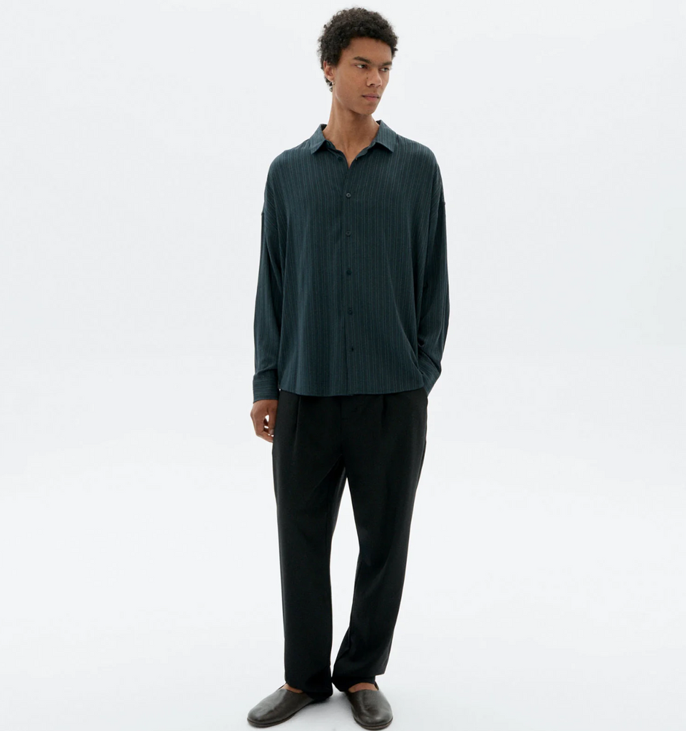Camisa rayas verde Ecovero Haru hecha de Viscosa Ecovero™