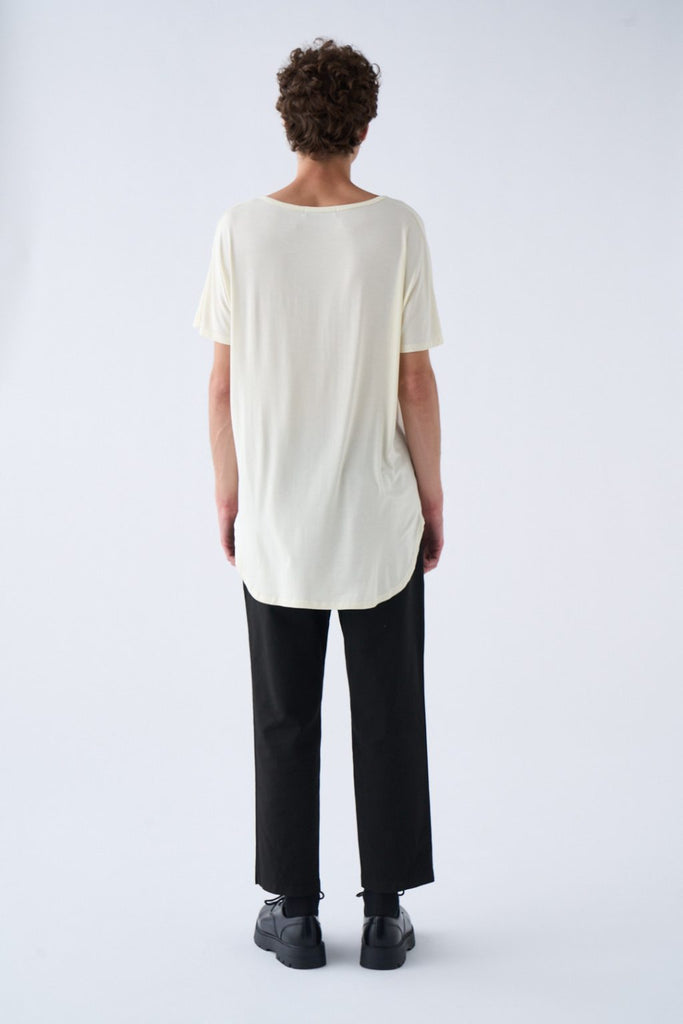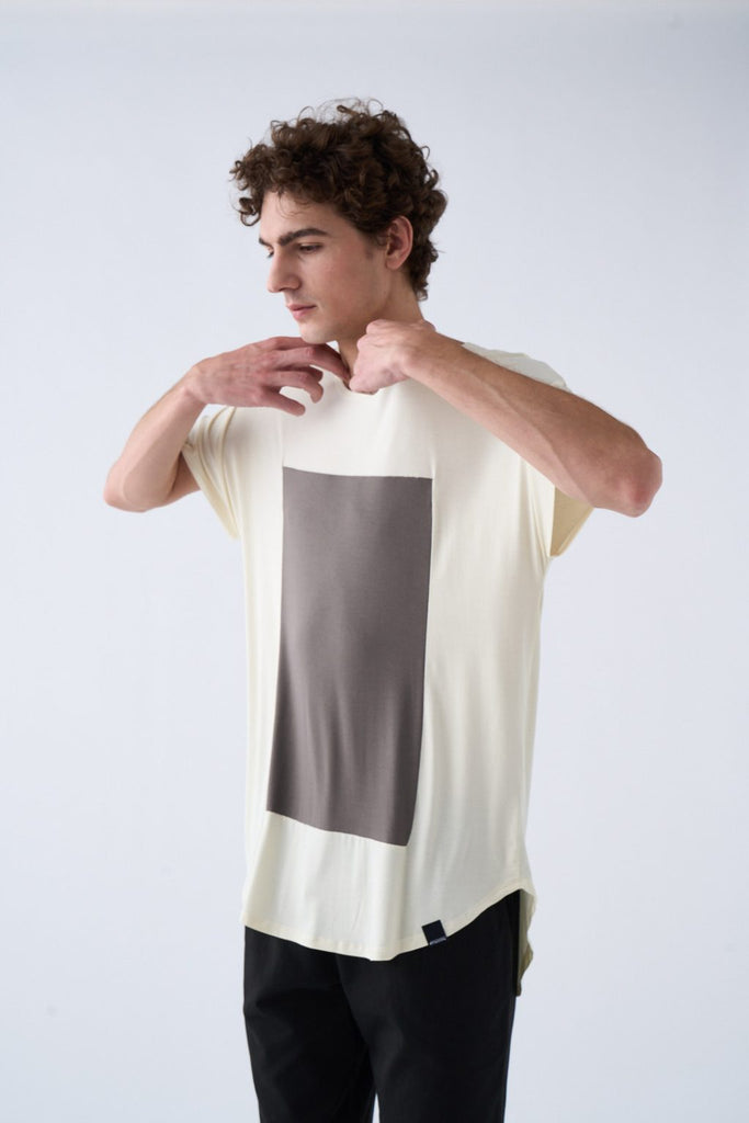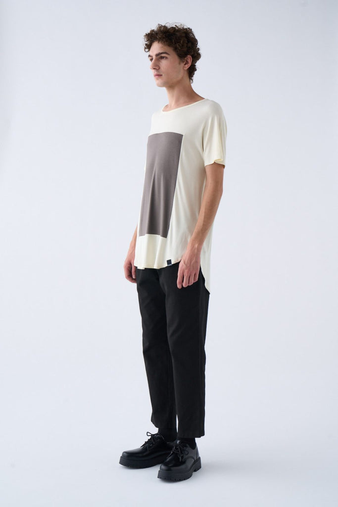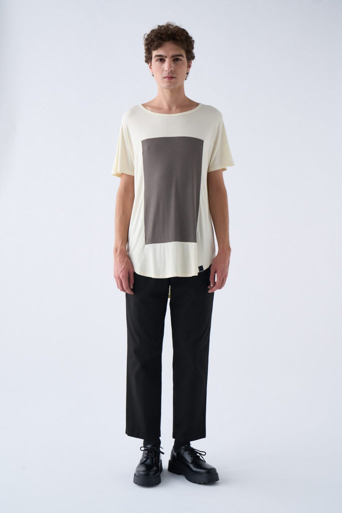 Lo más peculiar de nuestras camisetas es el tejido de eucalipto. Su patrón de manga japonesa hace que sirva para todos los cuerpos siendo talla única. Se compone de piezas geométricas de diferentes colores cosidas entre sí. És la primera prenda que hicimos y con la que nació PITAGORA <3
