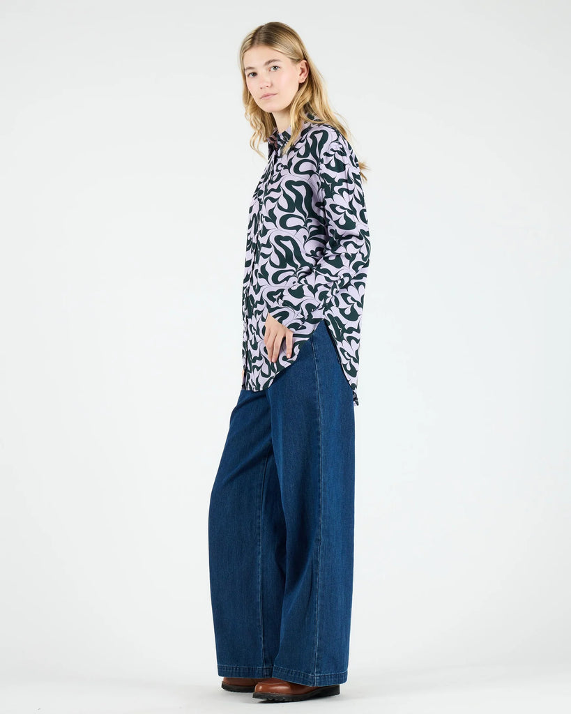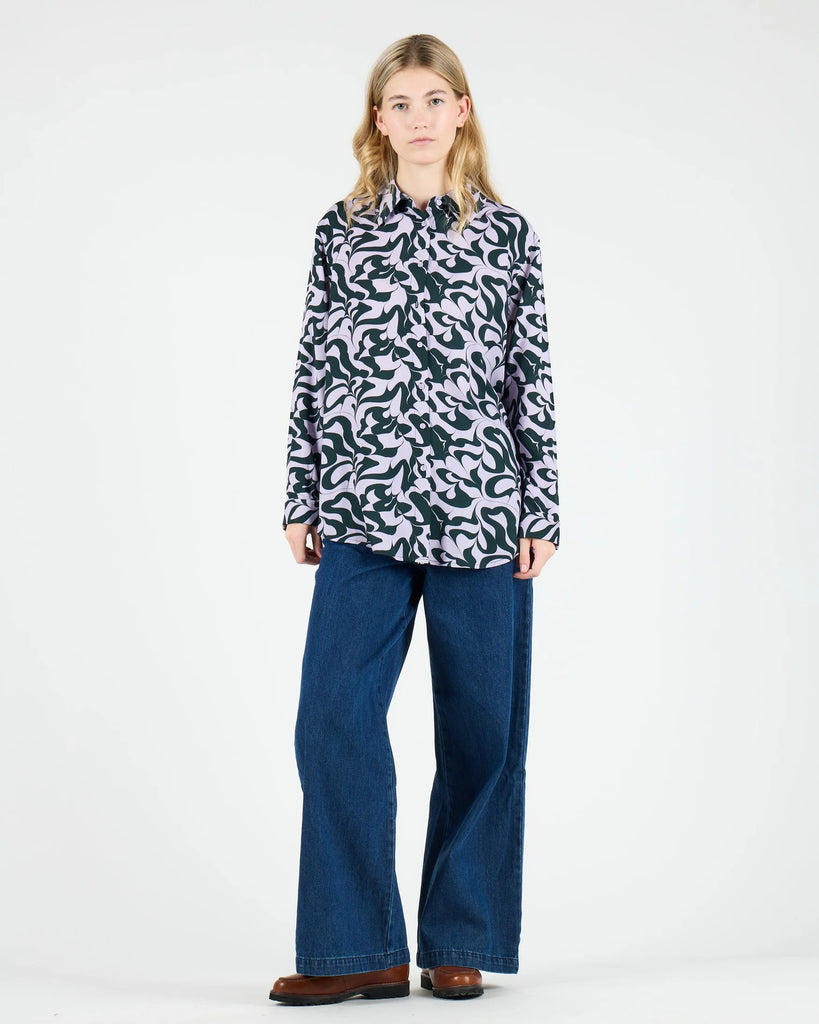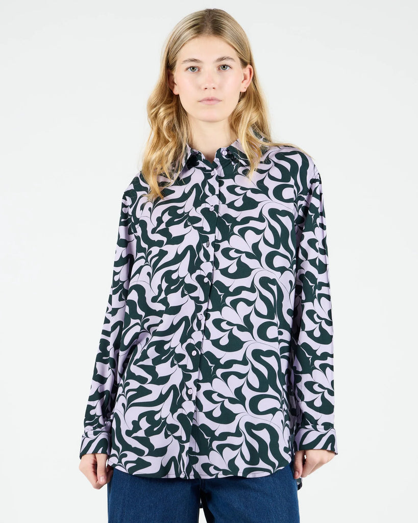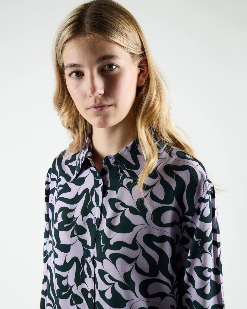 Crafted from 100% viscose (LENZING™ ECOVERO™), 145 G/SQM, this shirt offers a relaxed fit with marbled plastic buttons and sleeve plackets with button closure. LENZING™ ECOVERO™ production uses a low-emission, low-water process to minimize environmental footprint.