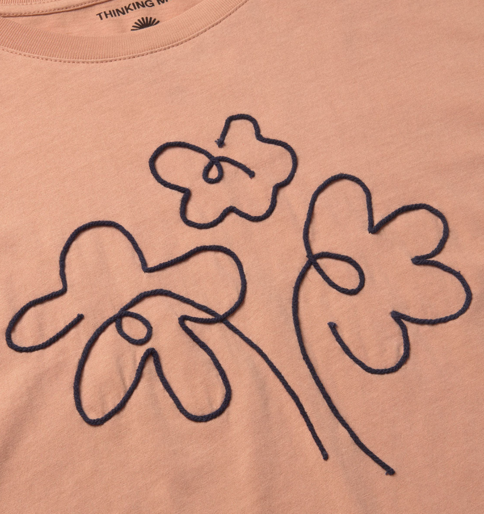 Camiseta rosa bordada a mano flower Lucia hecha de algodón orgánico