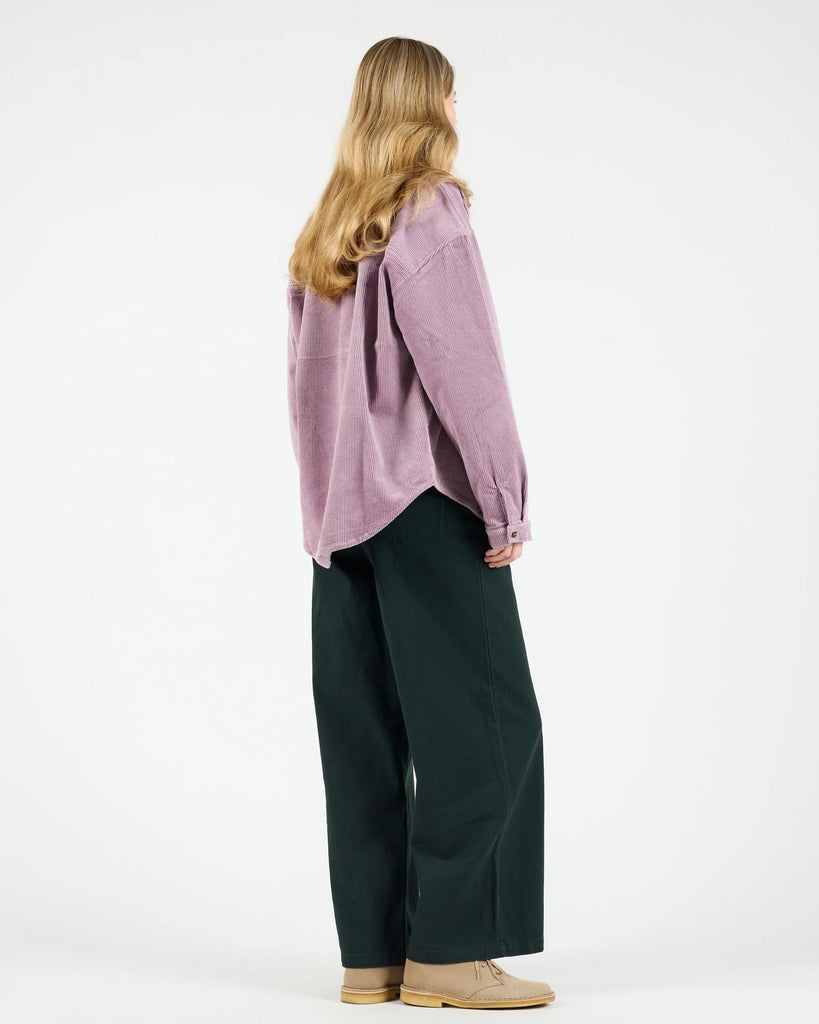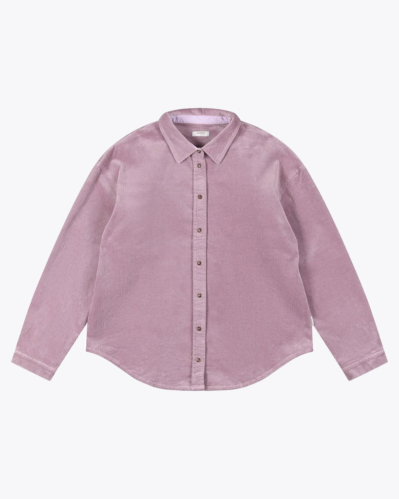 Made from 97% cotton and 3% elastane corduroy, this regular fit blouse features a plastic button closure, pleated back, and sleeve plackets with button closures.