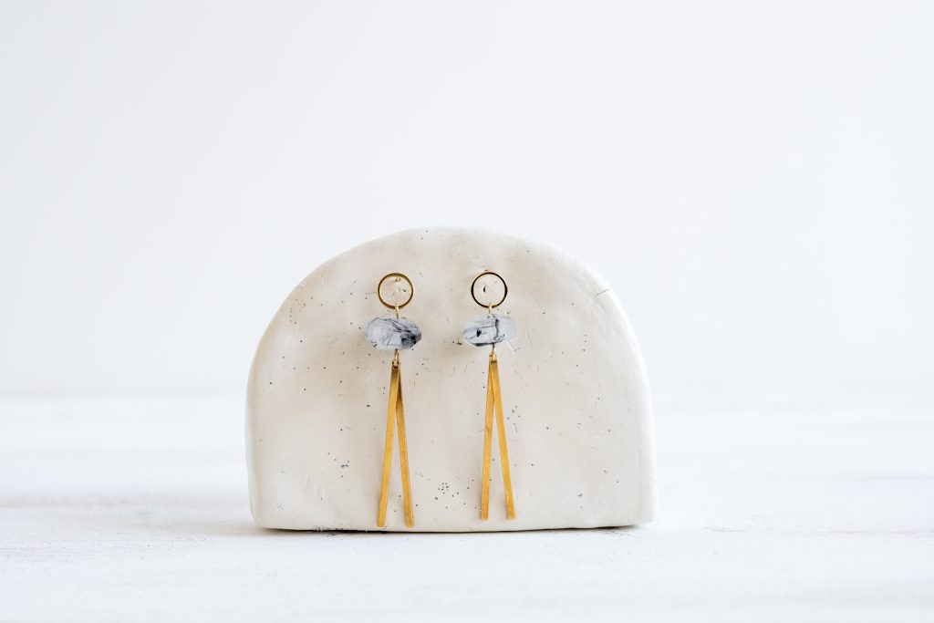 Todo el proceso de diseño y producción de estos pendientes se lleva a cabo entre nuestro taller en la Garrotxa y los pequeños talleres familiares de nuestros proveedores locales.