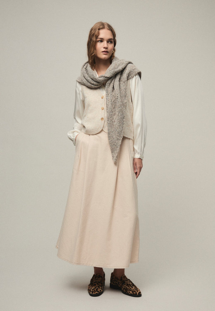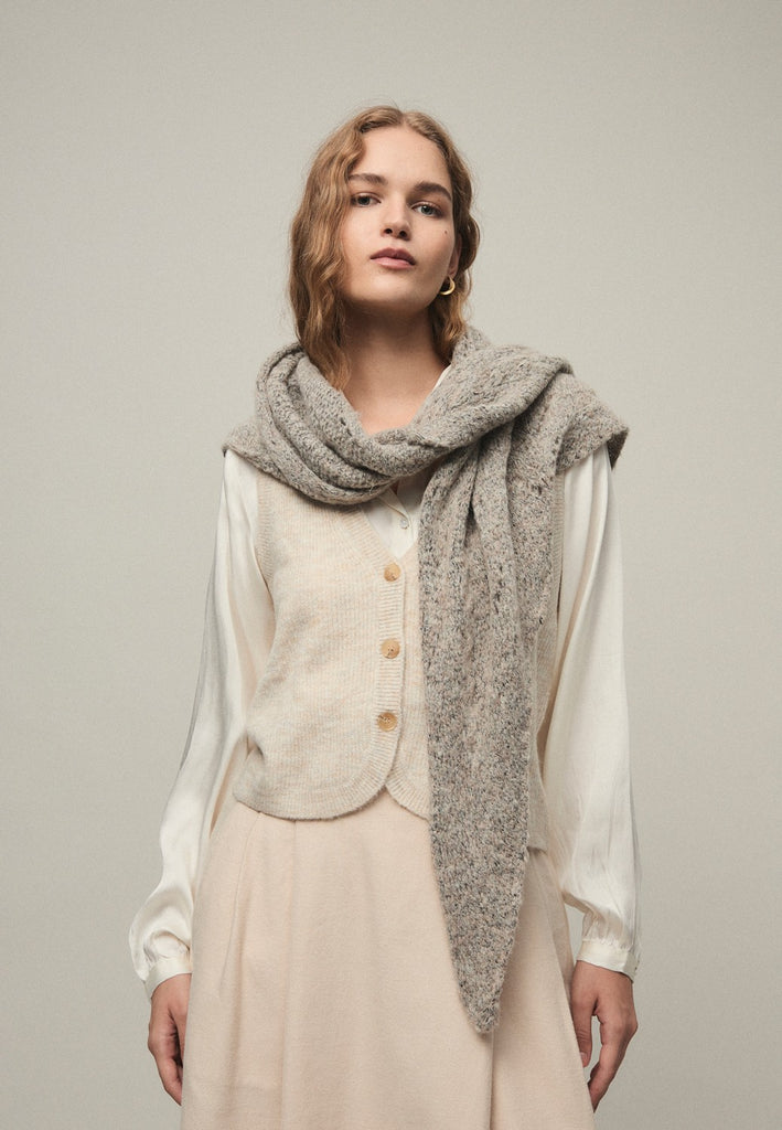 Chaleco de punto con escote en pico y abotonadura central.