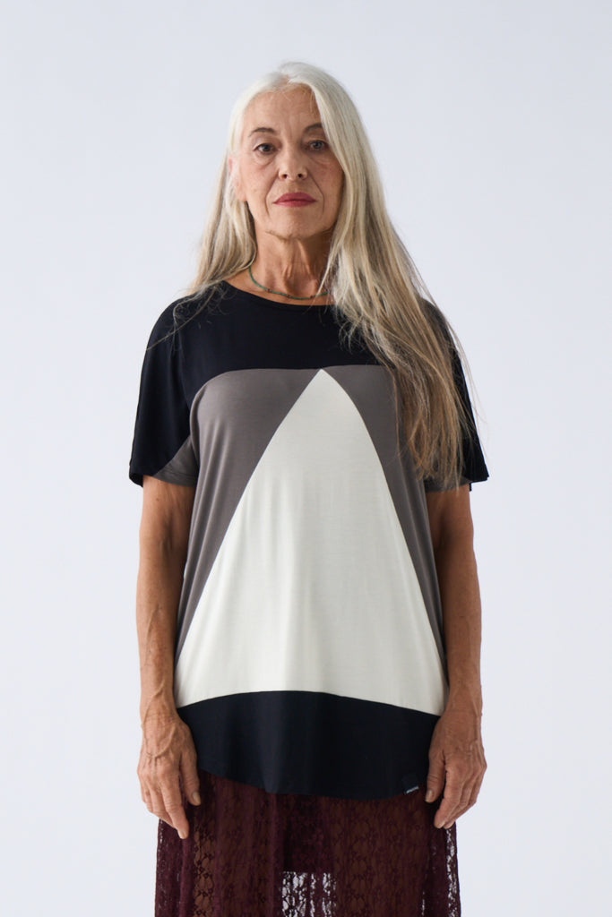 Una sucesión de triángulos con todos los ángulos iguales crea la camiseta más geométrica de nuestra colección y mas unisex.