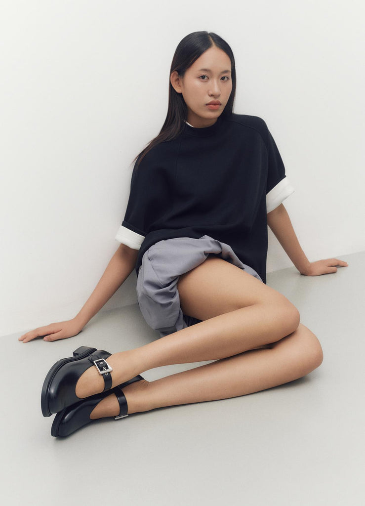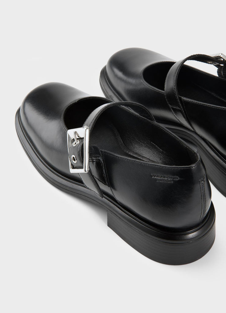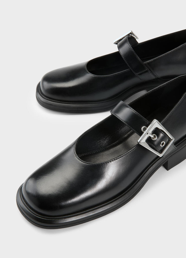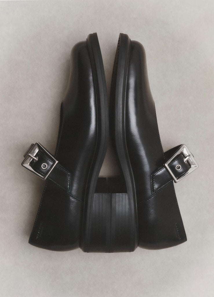 Unas Mary Janes modernas y con mucho estilo. El modelo Ellis está confeccionado en cuero negro y tiene la puntera cuadrada. Incluye forro y plantilla de cuero sin cromo, además de una correa con hebilla ajustable.