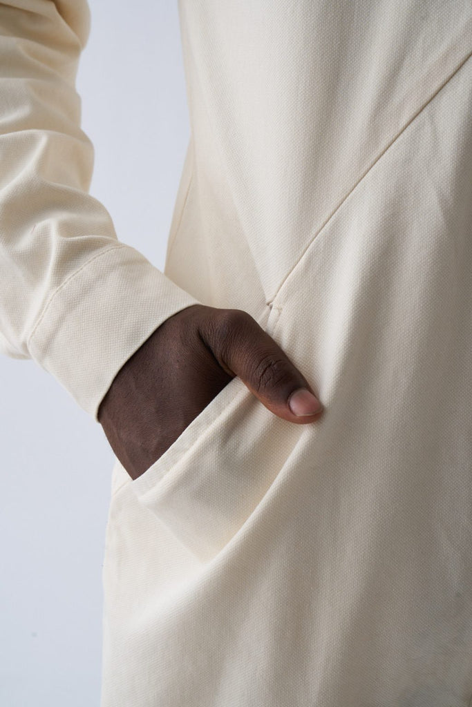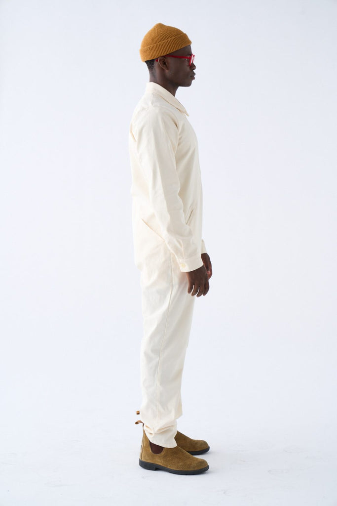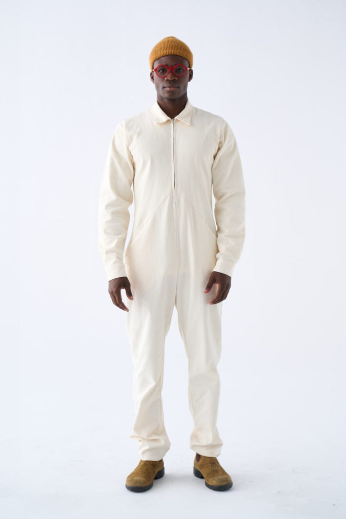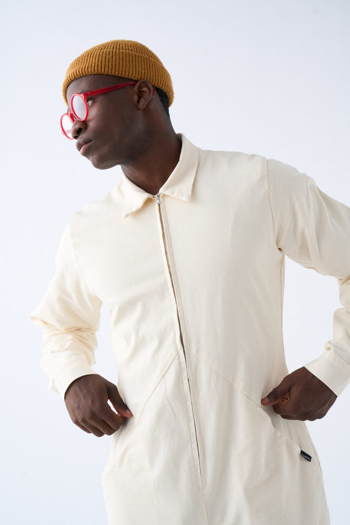 Hay días en los que quieres salir en peto y otros en los que prefieres algo más cerrado, pero igual de cómodo. Ahí entra el mono. Mismo espíritu relajado, misma sensación de libertad, pero con manga larga y una cremallera metálica que sube hasta el cuello de camisa. Lo abres, lo cierras, lo llevas como quieres. Sin botones que molesten ni ajustes innecesarios, solo una pieza pensada para acompañarte sin estorbar. Y, por supuesto, con el mismo corte limpio, bolsillos escondidos y actitud minimalista que hace que vestirlo sea tan fácil como vivirlo.
